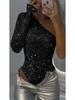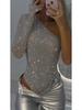 2025 Spring/Summer Glamorous Rhinestone Sequin One-Shoulder Bodycon Top for Women