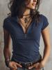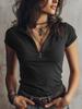 Damski Klasyczny Dzianinowy Top z Krótkim Rękawem i Kołnierzykiem na Zamek - Kolekcja Wiosna/Lato 2026 — kup artykuł online z bezpłatną dostawą na cały świat!
