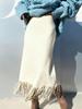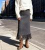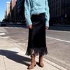 Women's Black Mid-length A-line Skirt with Tassels – Slimming Autumn/Winter Style — kup artykuł online z bezpłatną dostawą na cały świat!