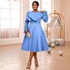 Plus Size Women's Light Blue Rhinestone Ruffle Sleeve A-Line Mid-Length Formal Dress