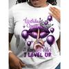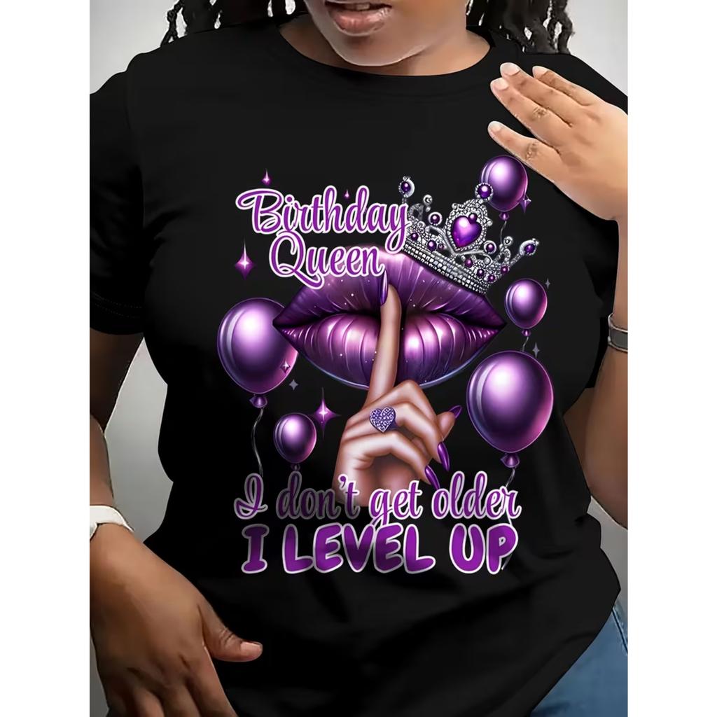Women's Birthday Queen Letter Print Short Sleeve Round Neck T-Shirt - Casual Semi-Sheer Blouse Suitable for Parties & Casual — kup artykuł online z bezpłatną dostawą na cały świat!