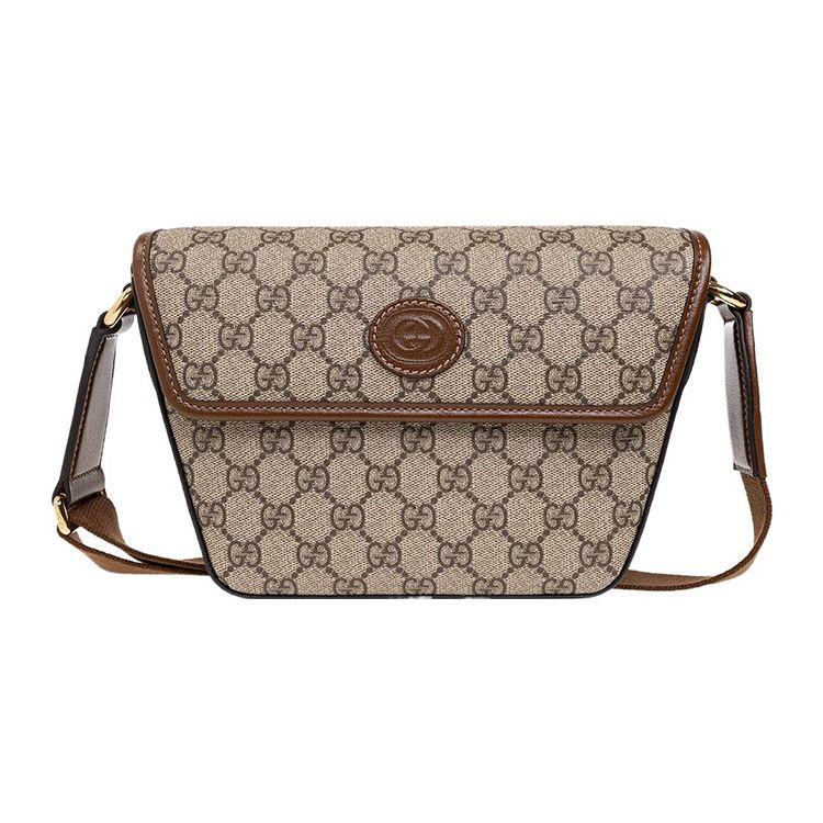 Gucci Interlocking Double G Oval Tag Trapezoidal Leather And Canvas Crossbody Shoulder Bag Men bags 715767-92THG-8563