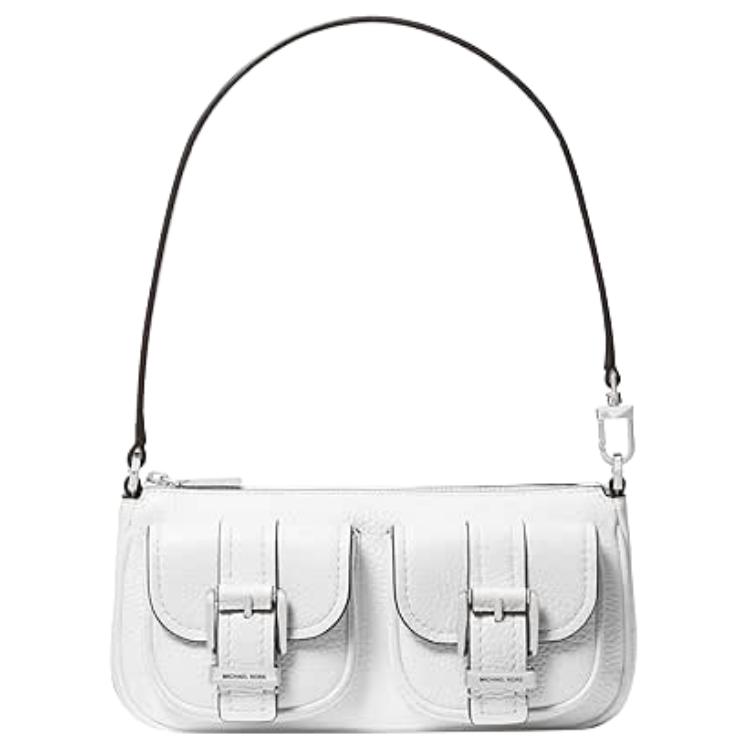Michael Kors MK Zoe Gold Hardware Zipper Closure Pebble Leather Shoulder Bag Women Shoulder Bag Pure-White 32S5SZCU1L-OPTICWHITE