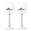 Zestaw Kieliszków do Wina Rekin Ręcznie Dmuchane Bezołowiowe Szkło Kielich z Rekinem 3D Wewnątrz 300ml Kreatywny Motyw Rekina Akcesoria Barowe Prezent dla Mężczyzn Kobiet Miłośników Rekinów