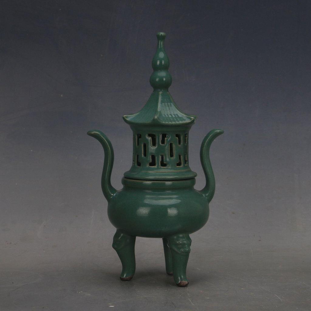 Handmade Liao Ru Kiln Green Glaze Double-Ear Incense Burner - Antique Porcelain Collectible — kup artykuł online z bezpłatną dostawą na cały świat!