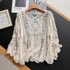 Women Summer Lace Knit T-Shirt O-Neck Hollow Long Sleeve Loose Basic White Top Tee Vest Tops Clothing