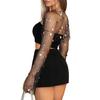 Damski Bolerko z Piórami i Dżetami Długi Rękaw Siateczka Fishnet Błyszczący Odkryty Przód Cover Up Błyszczący Crop Top na Imprezę — kup artykuł online z bezpłatną dostawą na cały świat!