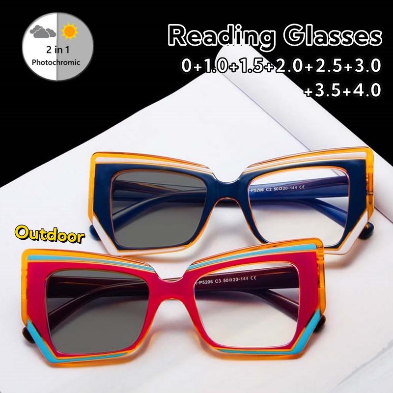 Advanced Photochromic Presbyopic Eyeglasses Irregular and Dazzling Trend for Women Men HD Blue Ray Blocking Eyeglasses 0 To +4.0