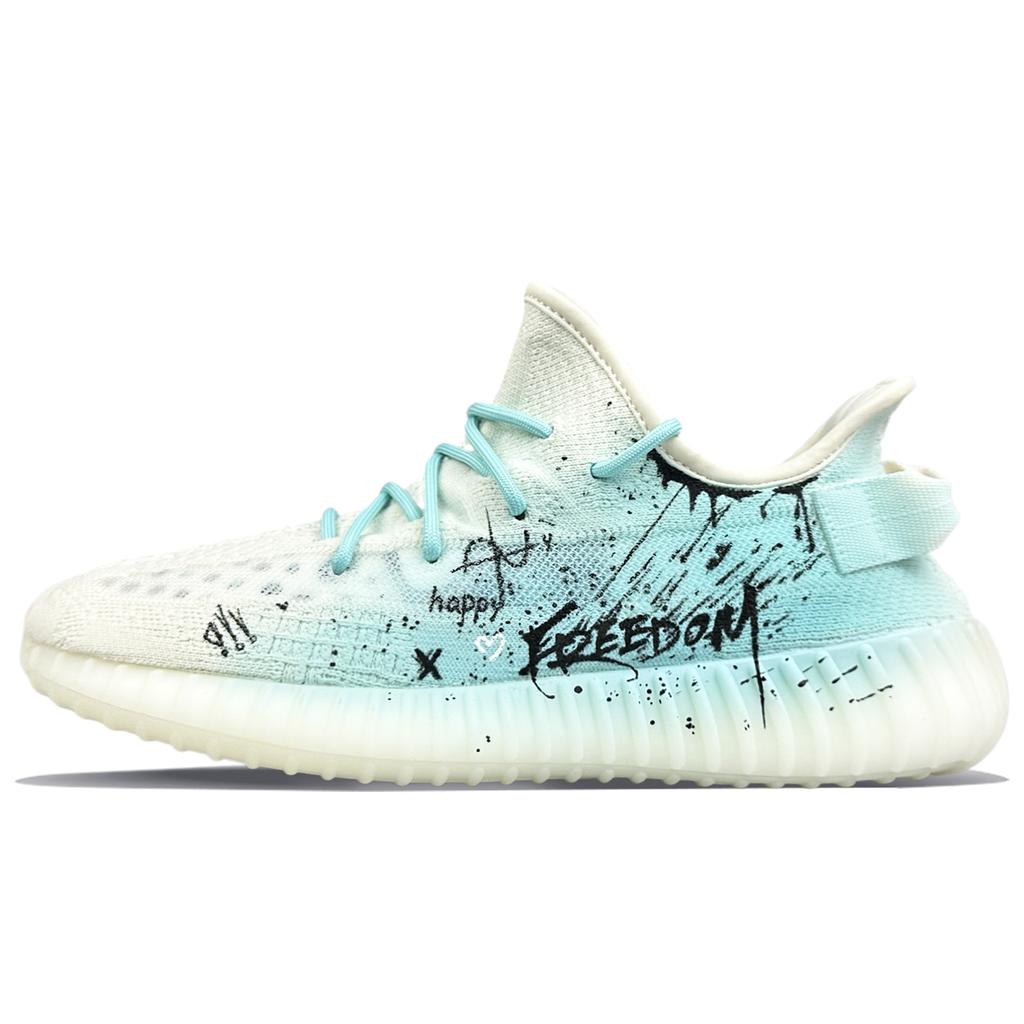 Adidas Oryginalne Yeezy Boost 350 V2 Odporne na ścieranie Odporne na ścieranie Niskie Buty Codzienne Unisex Białe Niebieskie HQ6316(Zespół401-)