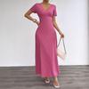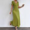 Letnia nowość, bestsellerowy damski strój w dużych rozmiarach, gładki kolor, seksowna, z głębokim dekoltem V, z krótkim rękawem, długa sukienka — kup artykuł online z bezpłatną dostawą na cały świat!