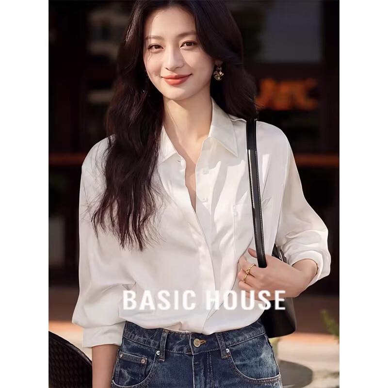 Basic House Women's Loose White Lapel Shirt