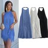 Letnia Nowa Wakacyjna Seksowna Kreatywna Szydełkowa Sukienka na Szyję z Frędzlami i Łączeniami