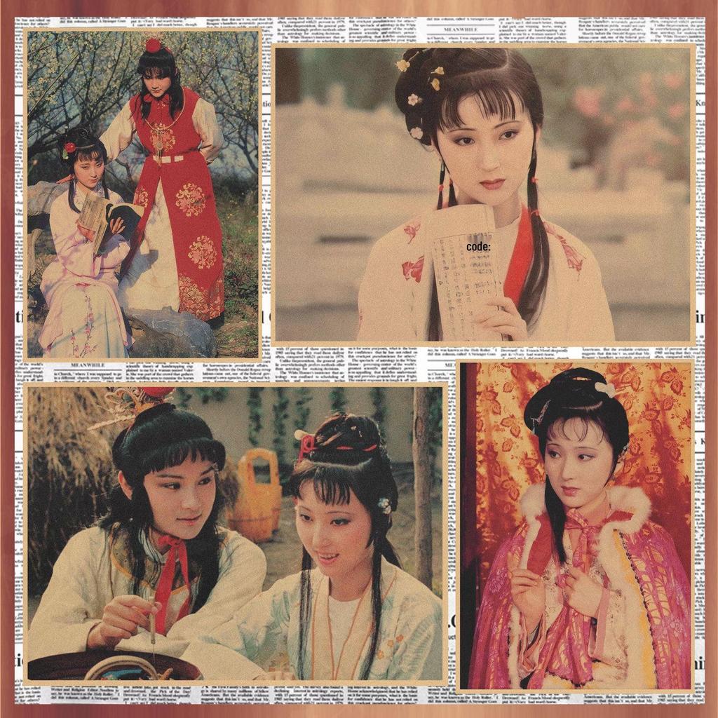 Retro Poster of 'Dream of the Red Chamber' Featuring Lin Daiyu, Jia Baoyu, Chen Xiaoxu - Kraft Paper Decorative Wall Mural