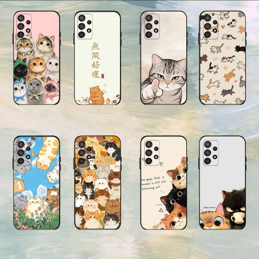 Urocza Popularna Kawa Kot Kreskówka Etui na Telefon Dla Samsung S25,S24,S21,S22,S23,S30,Ultra,S20,Plus,Fe,Lite,5G Czarne Pokrowiec