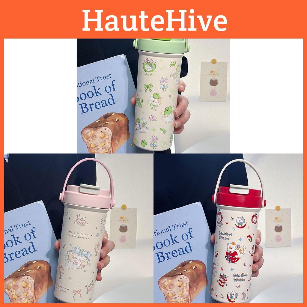 Salt Cat Creators 600ml Insulated Travel Mug With Handle And Straw For Office And Outdoor Use