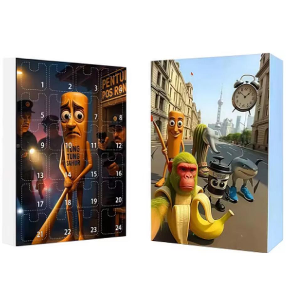 Christmas Arrival Calendar 24 Grid Countdown Brainrot Tung Sahur Pendant Acrylic Cartoon Animal Shark Wooden Stick Model Gift
