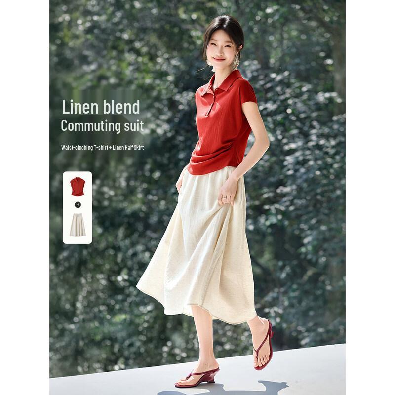 Polo Collar Linen Blend T-Shirt & Skirt Set — kup artykuł online z bezpłatną dostawą na cały świat!