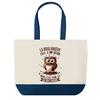 Sac shopping - PLANETEE - Sac shopping fond bleu Boulangère Chouette - Coton 40x45 cm - Grand format - Fabriqué en France