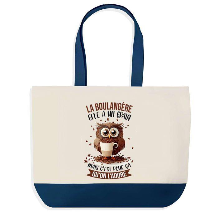 Sac shopping fond bleu Boulangère Chouette Grain Collègue Départ Cadeau Anniversaire Noël | Design Graphique Grand Sac Courses Cabas — kup artykuł online z bezpłatną dostawą na cały świat!