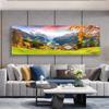 Pintura decorativa de banner de paisagem com fundo para atrair riqueza, pintura em tela, pôsteres de montanha verde para sala de estar