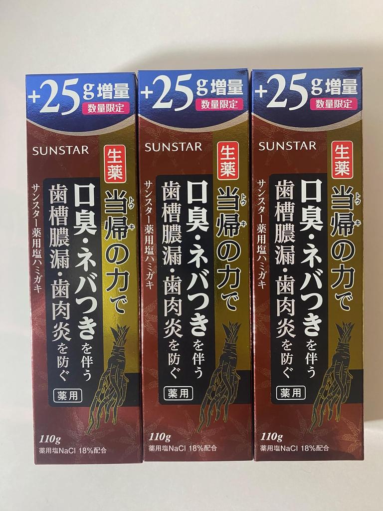 [30% more limited edition package] [3 boxes] SUNSTAR Medicinal Salt Toothpaste, Herbal Angelica Power, Spicy Mint, Toothpaste 110g (25g more than the