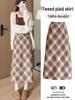 Coffee Wool Plaid Skirt for Women with High Waist Slim Skirt for A-line Midi-length Umbrella Skirt
