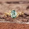 Anel Boémio de Prata de Lei 925 com Ágata Musgo Verde Natural para Mulheres Joia de Casamento Noivado Presente
