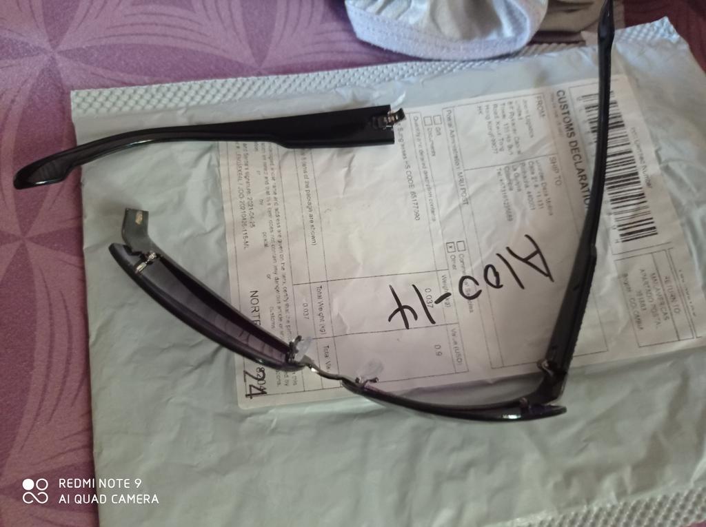 Minha primeira e última compra no Joom. O item está quebrado. Ambas as hastes dos óculos de sol estão quebradas. Das poucas embalagens, isso não é a toa. Se o frete de retorno não fosse mais caro do que as mercadorias - eu as devolveria.