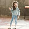 Primavera meninas manga de renda crianças duas peças terno camisola calças algodão casual calça jeans terno