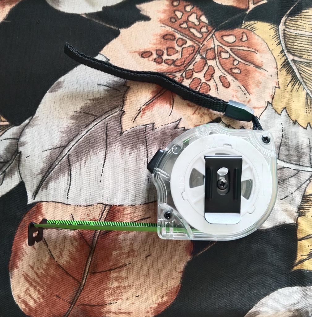 Depois de desenrolar completamente a peça, você deve ter cuidado ao enrolá-la. Caso contrário, ele volta de forma bastante incontrolável 🫣. A fita métrica cumpre seu propósito. Ah, e tem um gancho para prender na calça ou onde mais você quiser 😜.