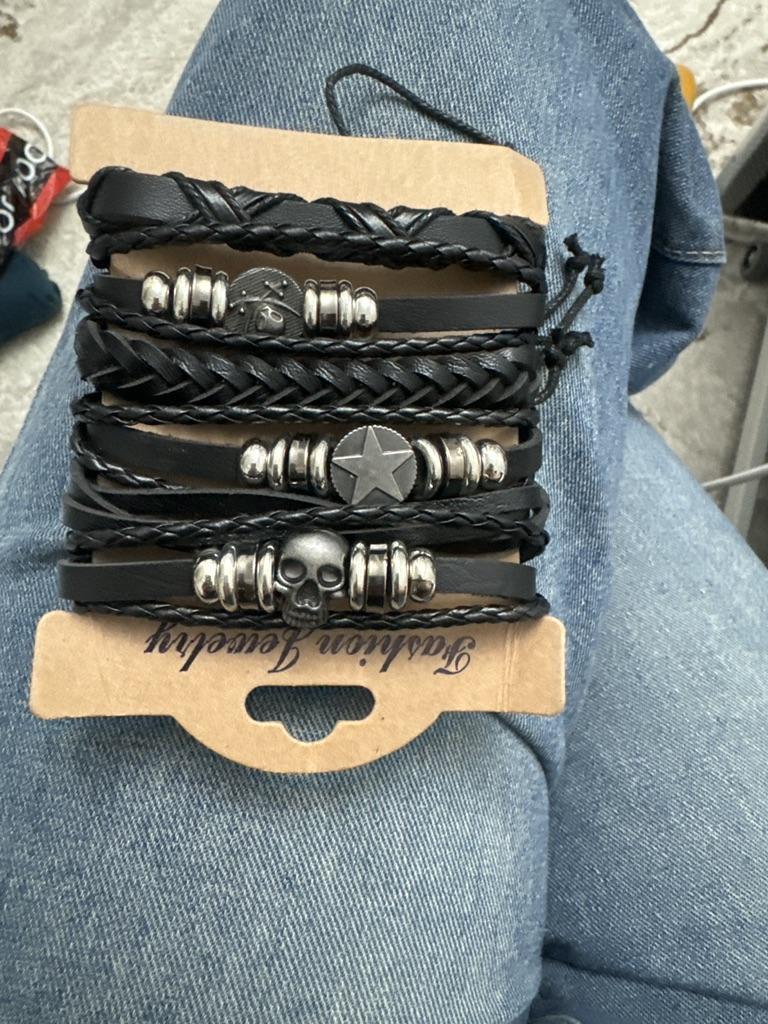 Pulseira de couro pirata caveira padrão estrela tecido metal rock joias para festa — comprar online na loja virtual Joom