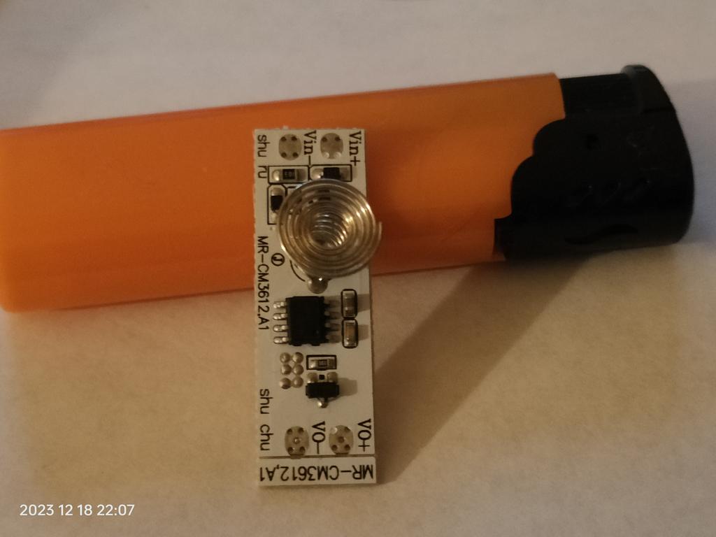 Recebi, o módulo funcionou, mas só funcionou quando toquei na mola. O dímero também funcionou quando a mola foi tocada por muito tempo. Se a mola estivesse encostada no metal, ela não funcionaria mais através do metal. Em geral, queimei o módulo durante os experimentos