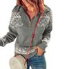 Suéter Feminino de Outono e Inverno Moda Gola Alta Padrão Geométrico Zíper Manga Longa Solto Casual Top