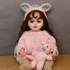 Boneca bebê reborn realista com cabelo cacheado implantado, menina, realista, 55 cm, corpo inteiro de vinil, simulação, boneca, roupa de malha, porquinho rosa, brinquedo de bebê