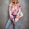 Camisa com estampa floral para mulheres, gola alta, manga comprida, camisa com botões, casual, moda outono, saia solta, respirável, leve e confortável