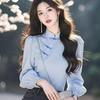 Stand-collar Jacquard Shirt for Women's Summer New Imitation Ice Silk Satin Thin New Chinese Style Top