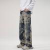 Mosaic Grid Jeans: Men's High Street Fashion Straight Wide-Leg Pants