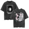 Camisetas Anime Lavadas Attack on Titan Gráfico Manga Curta Respirável Estampa Dupla Face Camisetas Streetwear Vintage