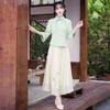 Women's Chinese Retro Tang Suit Cheongsam Top & Zen Tea Two-Piece Set