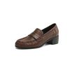 Women's low-heeled single shoes, spring and autumn models, full leather thick-heeled large-size casual shoes inside and outside, loafers.