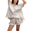 Cross-border European & American Ruffle Button Short Sleeve Top + Plaid Pants Pajama Set — comprar online na loja virtual Joom