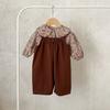 Korean Autumn Toddler Girl 2PCS Clothes Set Cotton Floral Printed Baby Girl Peter Pan Shirt Outfit Solid Loose Strappy Pant Suit