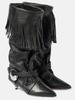 Botas de Bezerro Franjadas de Salto Fino de 5cm Pontiagudas Plissadas Novas para Mulheres Europeias e Americanas, Botas de Cavaleiro, Botas de Cano Médio Tamanho Plus — comprar online na loja virtual Joom