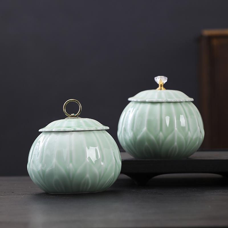 Celadon Ceramic Tea Canister: Large Half-Pound Capacity Storage for Green or Black Tea - Porcelain Sealing Jar with Printed Design. — comprar online na loja virtual Joom