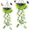 2pcs Solar Hanging Garden Lights, With LED Butterfly Hanging Ivy Vine Fake Leaves Decor IP65 Waterproof for Garden Wedding Decor