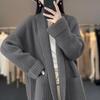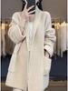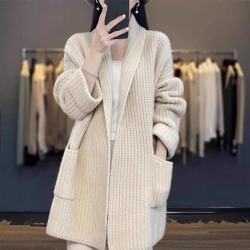 Korean Style Chunky Knit Plus Size Loose Cardigan - Autumn/Winter Women's Trendy Mid-Length Sweater Coat