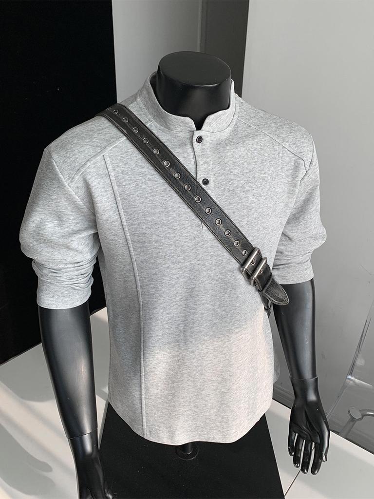 Men's Long Sleeve American Polo Henley Shirt - Spring/Autumn Trendy Cleanfit Base Layer Sweatshirt