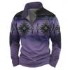 3D Geometric Pattern Men's Zipper Sweatshirts Vintage Ethnic Long Sleeve Half Zip Pullover Fashion Outdoor Street Casual Clothes