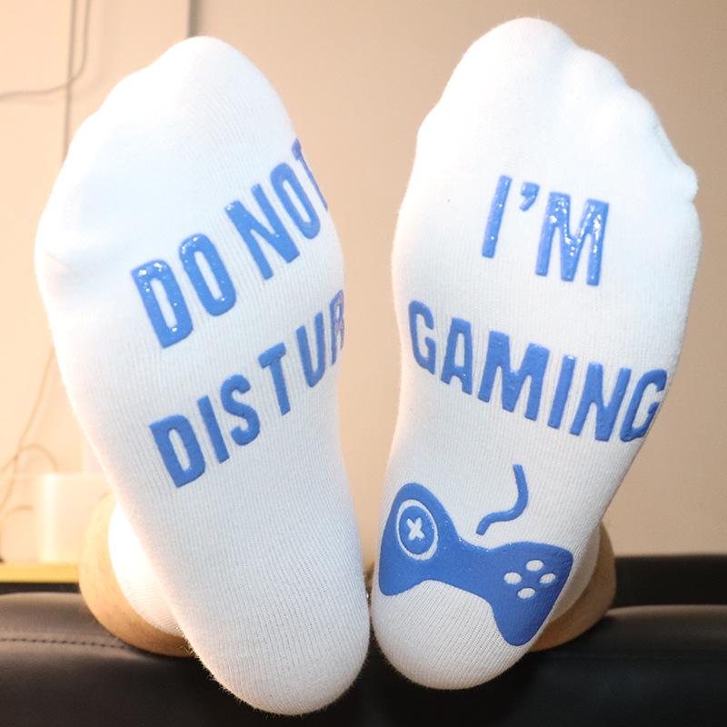 Trendy Mid-Calf Sports Socks: Lettered Soles, Non-Slip Design, Creative Casual Style for Gaming