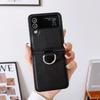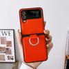 Samsung Z Flip7/6/5 Leather Pattern Ring Case - Drop Protection, Solid Color, Foldable Phone Cover